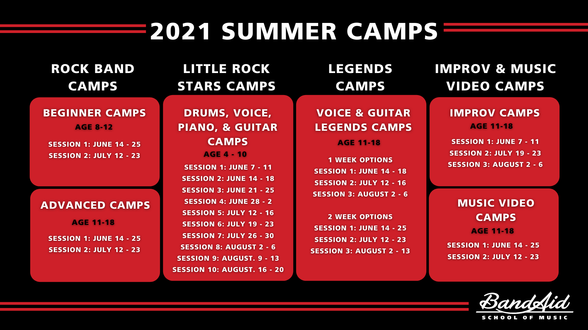 Choose from 5-10 Day Legends of Voice or Guitar Camps.